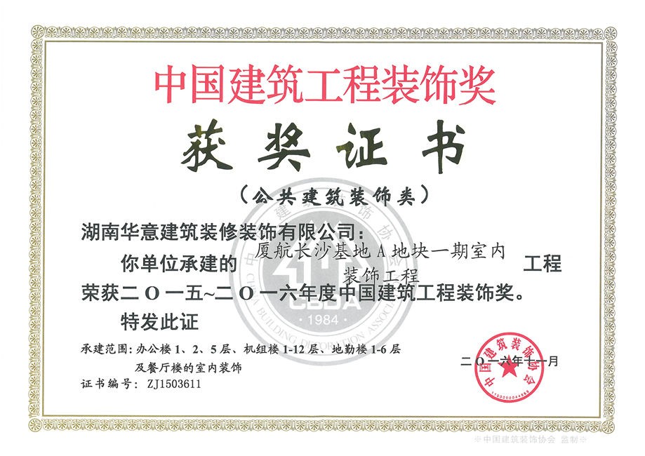廈航長沙基地A地塊一期室內(nèi)裝飾工程