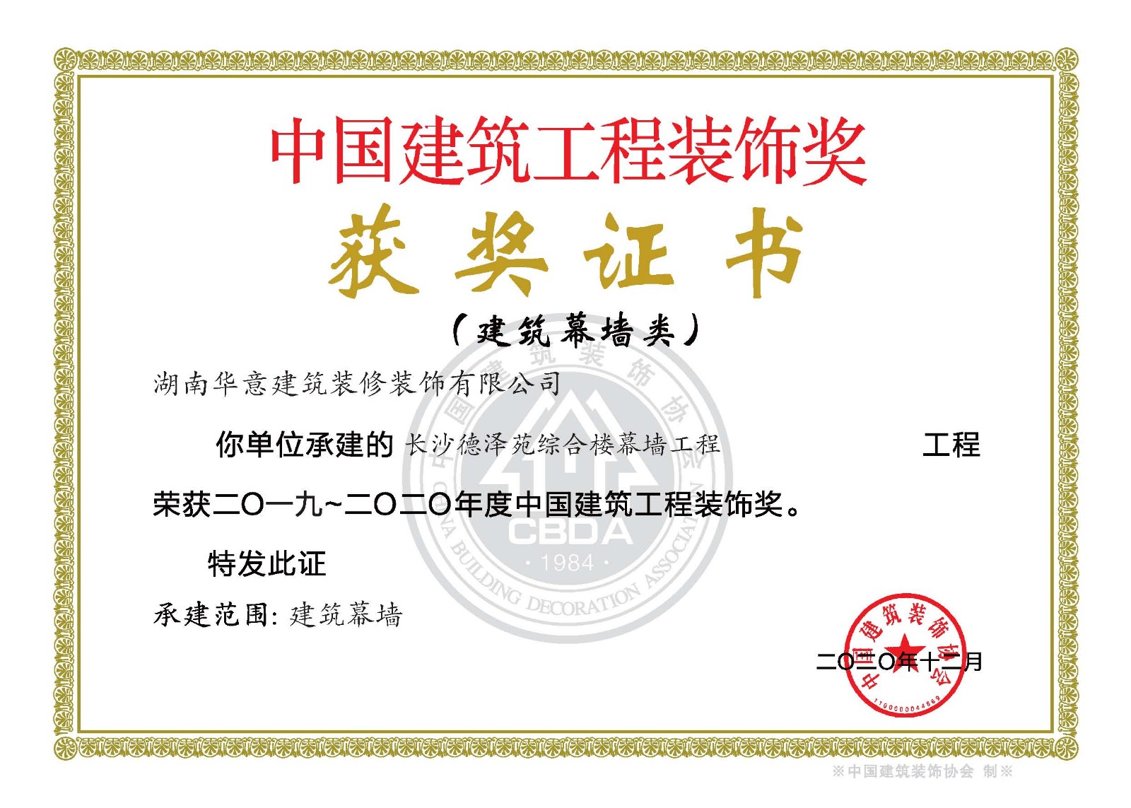 裝飾獎(jiǎng)--長(zhǎng)沙德澤苑綜合樓幕墻 工程